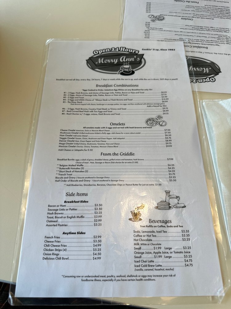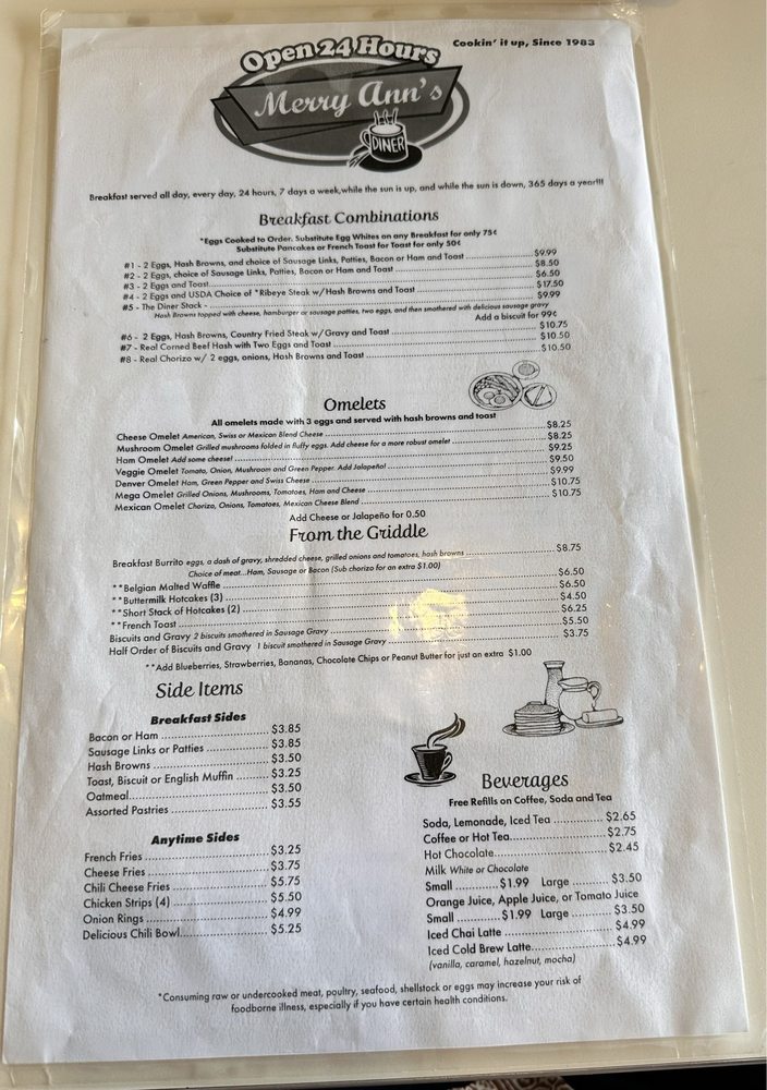 Introducing Merry Ann's Diner, a beloved American diner located in Champaign, IL. Known for its authentic diner vibes and fast, efficient service, Merry Ann's offers a variety of classic breakfast options. Customers rave about the quality of the breakfast offerings, with highlights like the crispy Belgian waffle and fluffy buttermilk pancakes. The new additions to the menu, such as the Bread Pudding and Apple Fritter, provide a delightful twist for those seeking something extra special. The ambiance of the restaurant is bustling and charming, with an open kitchen concept that showcases the staff's dedication to cleanliness. Prices are reasonable, making it a popular spot for students and locals alike. Whether you're a fan of traditional diner fare or looking for a unique dining experience, Merry Ann's Diner promises a memorable meal every time.